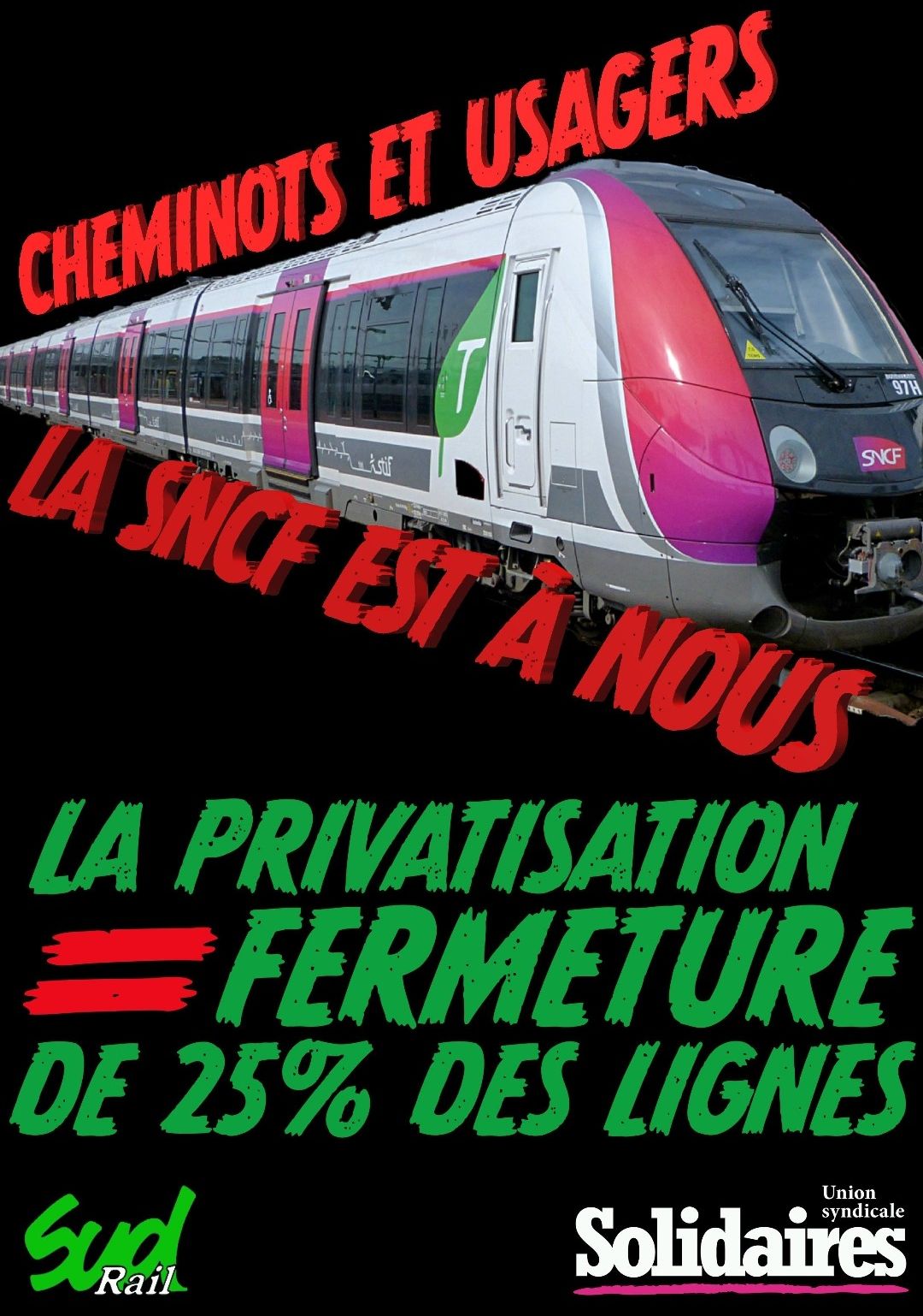 Toutes & tous aux côtés des cheminot·es le lundi 14 mai de 4h30 à 7h30 du matin au dépôt SNCF de Lille-Fives ou de 5h à 8h du matin à la gare d’Aulnoye-Aymeries ! Soyons là pour marquer notre solidarité avec celles et ceux qui défendent notre service public du Rail ! Si on a le temps et les moyens, on peut aussi apporter du café ou un truc à manger.