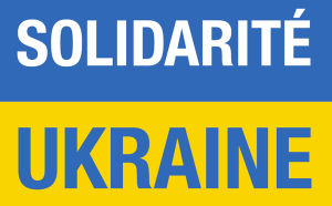 drapeau ukrainien avec mention « Solidarité Ukraine »