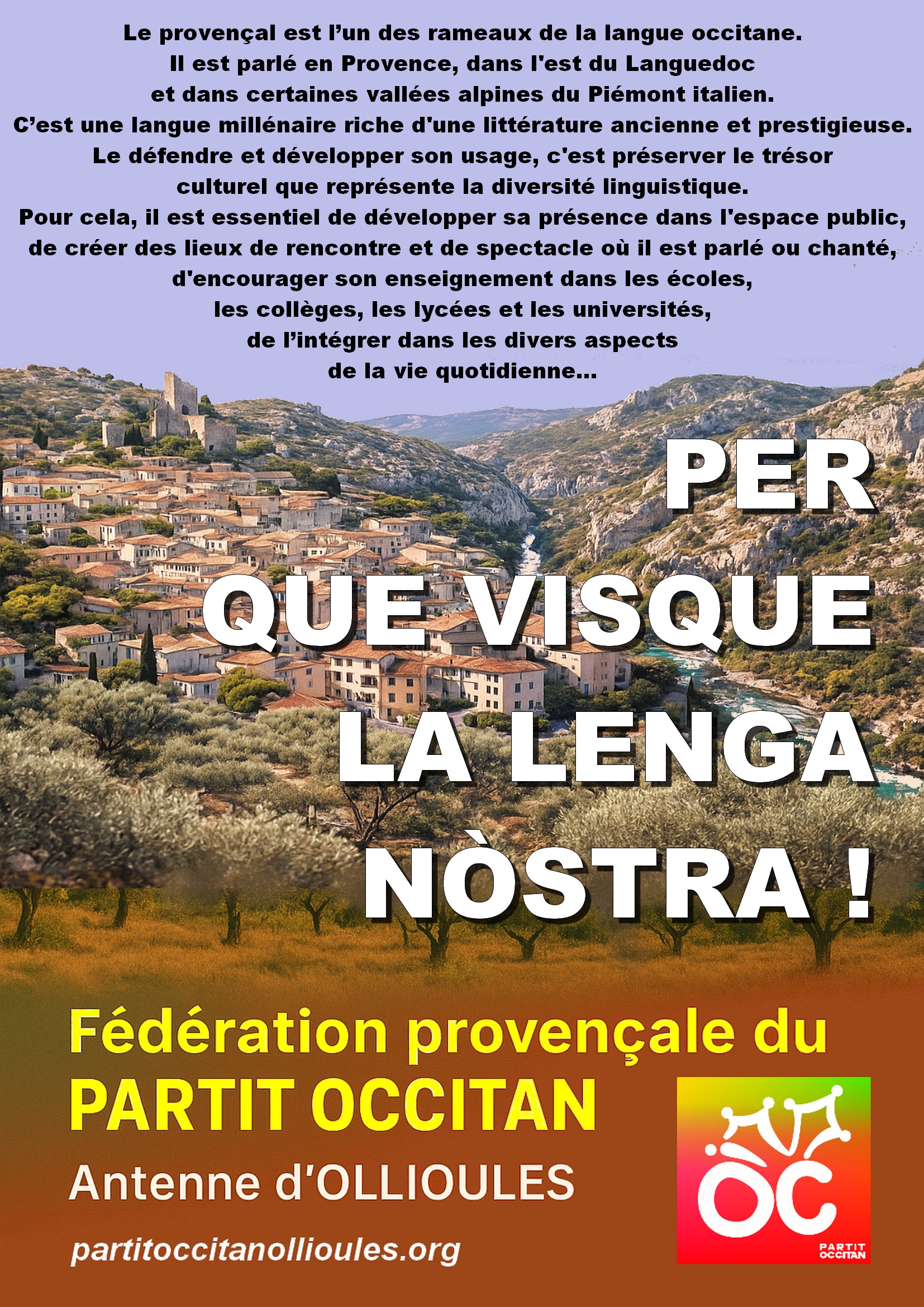 Il existe des ateliers et cours de langue provençale dans plusieurs communes du Var (voir la liste). Voir également le site Provença Tèrra d’Òc (section varoise de l’Institut d’études occitanes)
