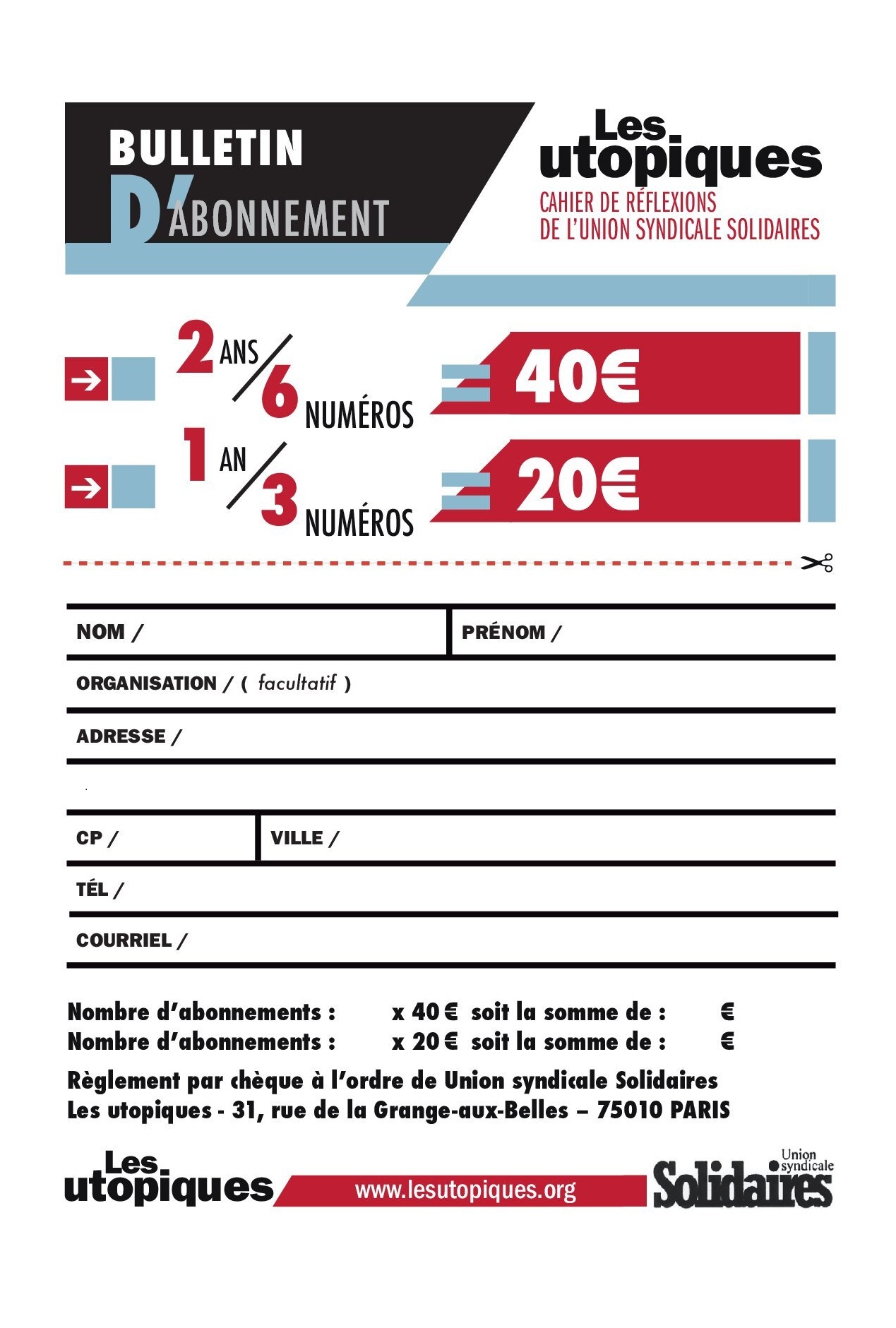 Les utopiques (cahiers de réflexions de l’Union syndicale Solidaires) viennent de sortir leur n° 21.