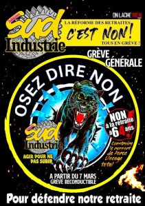 visuel de SUD industrie pour la grève reconductible contre la réforme des retraites à partir du 7 mars 2023