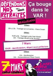 À Draguignan, pour nos retraites, les 4, 6, 7 et 8 mars 2023 !