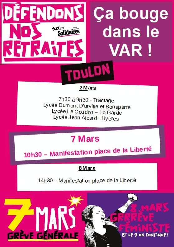 À Toulon, pour nos retraites, les 2, 7 et 8 mars 2023 !