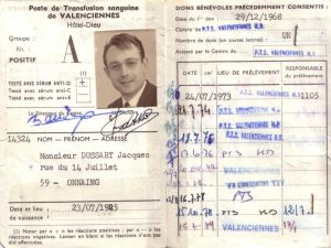 02 – carte de donneur de sang bénévole (Jacques Dussart – 1973)