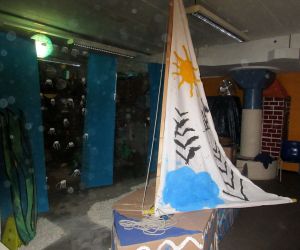installation sur le thème de la mer dans la classe d’Eric Dussart lors de la journée « portes ouvertes » organisée en juin 2016 à l’école Jacques Prévert de Villeneuve d’Ascq