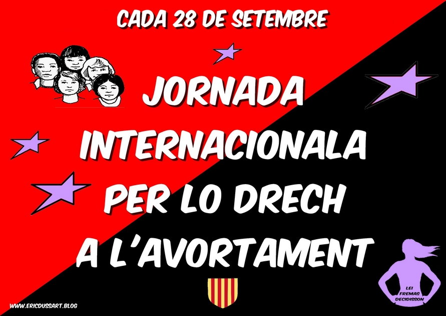 Affiche rouge et noire écrite en occitan provençal afin d’annoncer la journée internationale pour le droit à l’avortement (28 septembre)