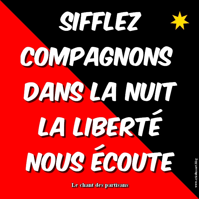 Extrait du « Chant des partisans » : Sifflez, compagnons ! Dans la nuit, la liberté nous écoute…