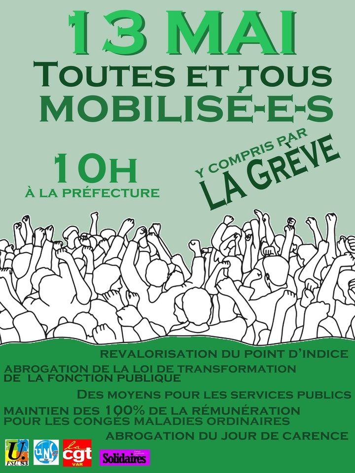 affiche intersyndicale pour la mobilisation fonction publique du 13 mai 2025 à Toulon