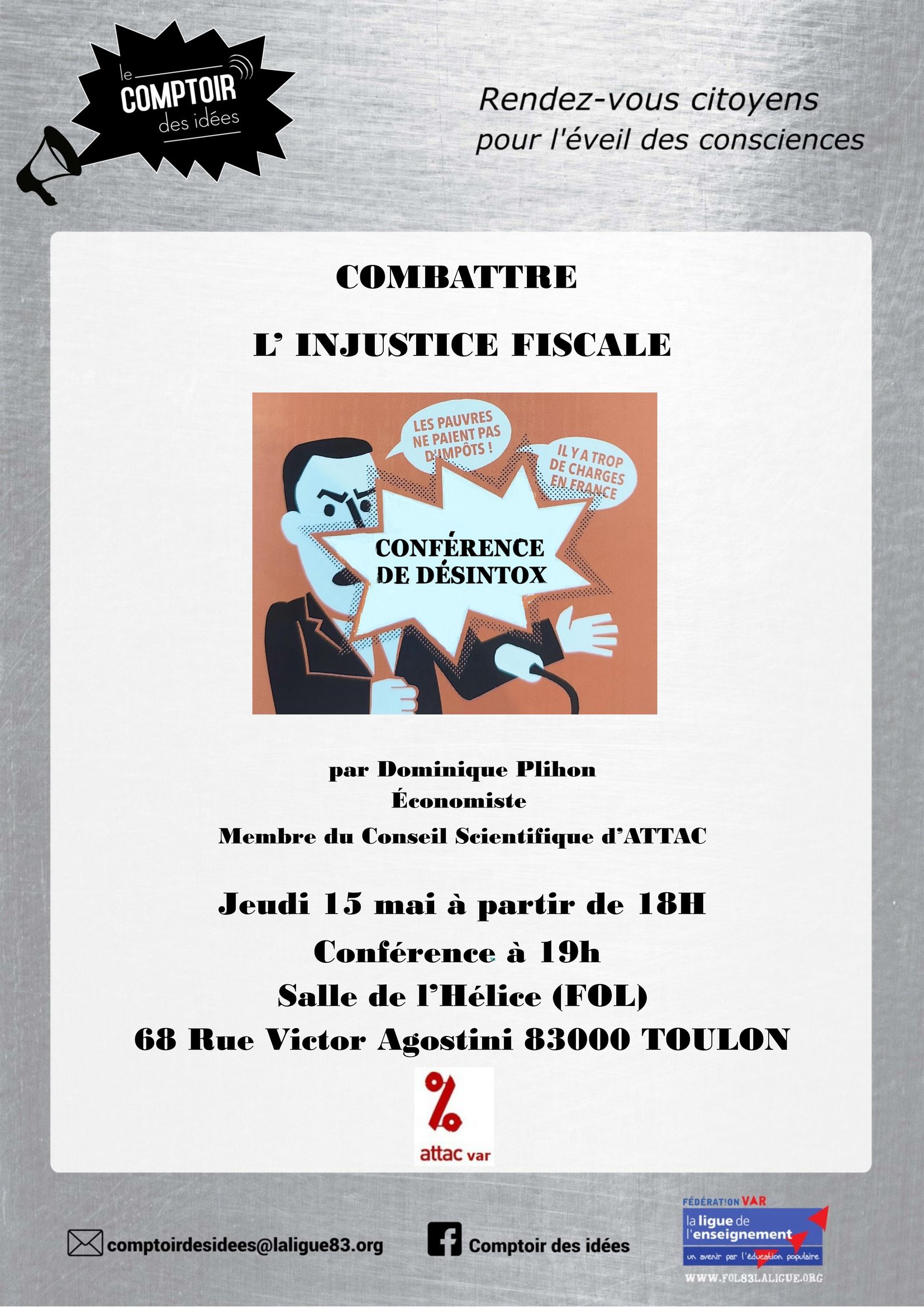 flyer-attac-conf-injustice-fiscale-15-mai-2025-recto Conférence d’Attac Var sur l’injustice fiscale le 15 mai 2025 à Toulon (recto du tract d’annonce) Partager : Imprimer(ouvre dans une nouvelle fenêtre) Imprimer Envoyer un lien par e-mail à un ami(ouvre dans une nouvelle fenêtre) E-mail Partager sur Facebook(ouvre dans une nouvelle fenêtre) Facebook Partager sur WhatsApp(ouvre dans une nouvelle fenêtre) WhatsApp Partager sur Telegram(ouvre dans une nouvelle fenêtre) Telegram Partager sur X(ouvre dans une nouvelle fenêtre) X Partager sur Mastodon(ouvre dans une nouvelle fenêtre) Mastodon Partager sur Bluesky(ouvre dans une nouvelle fenêtre) Bluesky J’aime chargement…