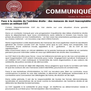 Communiqué de la CGT 83 en soutien au secrétaire de la CGT Toulon (8 avril 2026)