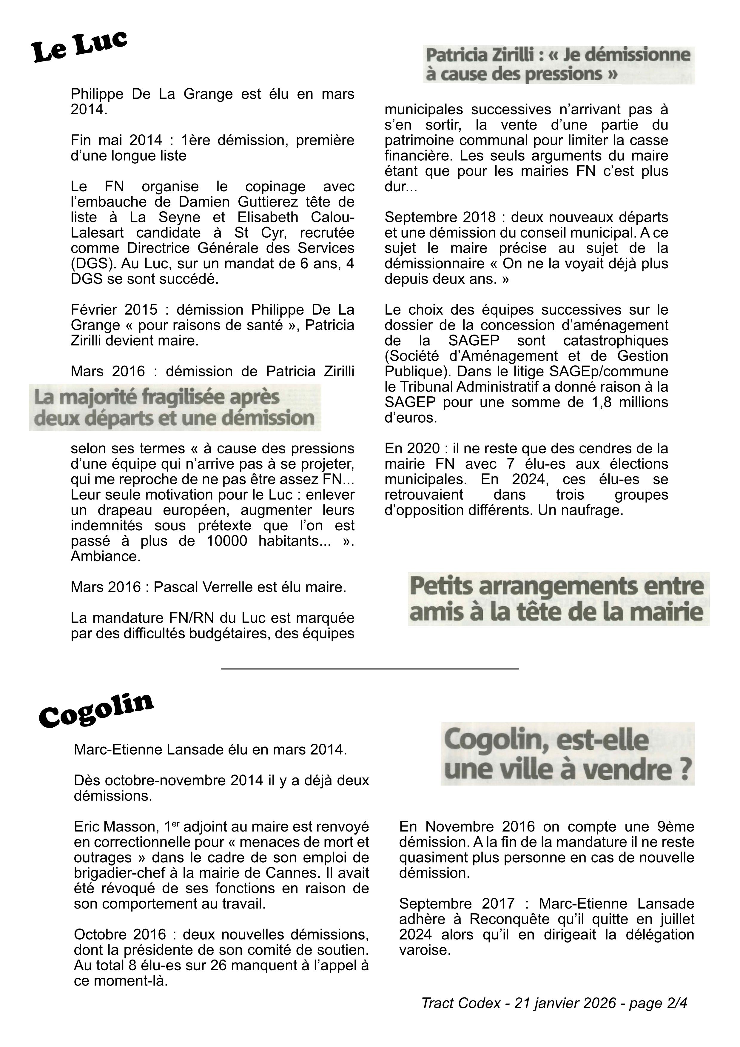 Page 2 du tract publié le 21 janvier 2026 par la CODEX 83 (COordination Départementale contre l’Extrême Droite)