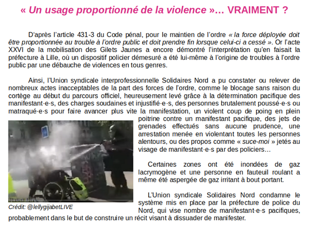Communiqué de Solidaires Nord suite à l’acte 26 de la mobilisation des Gilets jaunes à Lille