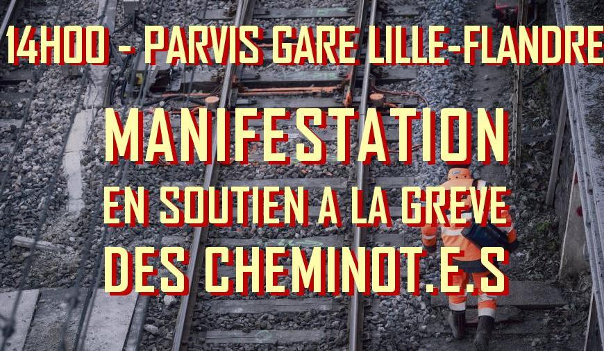 Communiqué du syndicat SUD-Rail de Lille : Le pacte ferroviaire que le gouvernement veut nous imposer mène à la casse du statut des cheminot·e·s et à la privatisation de l’entreprise. Les usager·e·s ont tout à y perdre ! La casse du statut de cheminot·e aura pour effet immédiat la brutale dégradation des conditions de travail de celles et ceux qui veillent à ce que vous … Continuer de lire Usagers et usagères du Rail, le 28 mai à la gare Lille-Flandres, venez discuter avec les cheminot·e·s en lutte !
