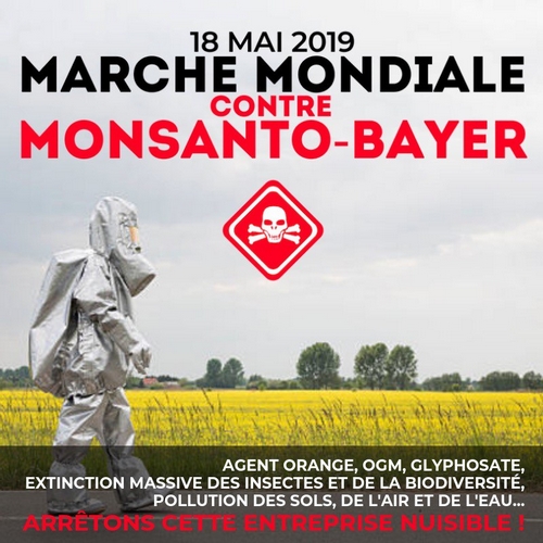 Nous ne nous laisserons pas détruire nos vies et notre futur par les lobbies de l’agro-industrie. Contre la volonté collective et l’intérêt général, la transnationale des pesticides manœuvre pour continuer à déverser ses poisons sur nos terres et dans nos assiettes. Nous refusons de laisser notre avenir et notre santé sous le contrôle de leur appétit capitaliste et condamnons la compromission du gouvernement qui les sert. C’est pourquoi l’Union syndicale Solidaires Nord appelle à participer à la marche mondiale contre Bayer-Monsanto et donne rendez-vous à toutes et tous samedi 18 mai à 14h, Place de la République, Lille. Même si Bayer-Monsanto ne veut pas… nous, on est là ! Continuer de lire Le 18 mai à Lille contre les pesticides